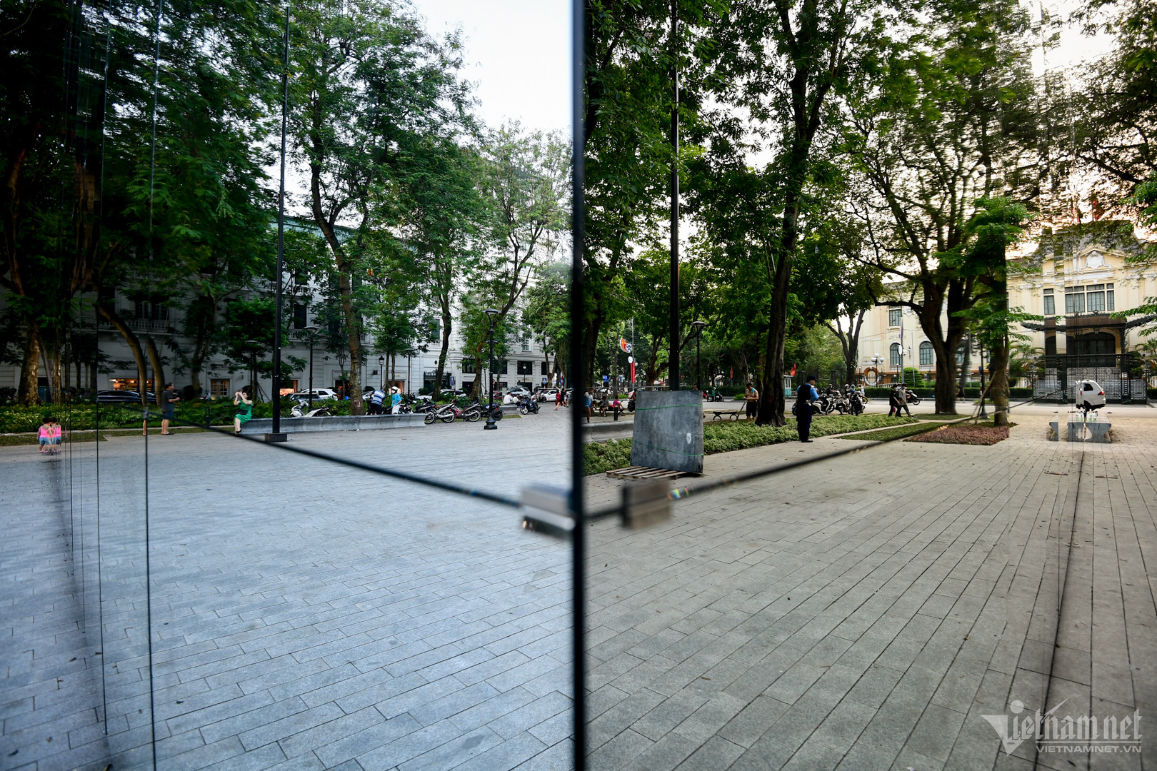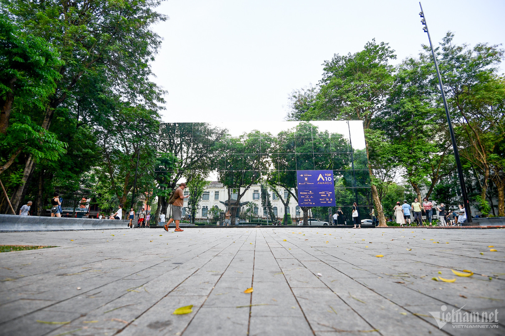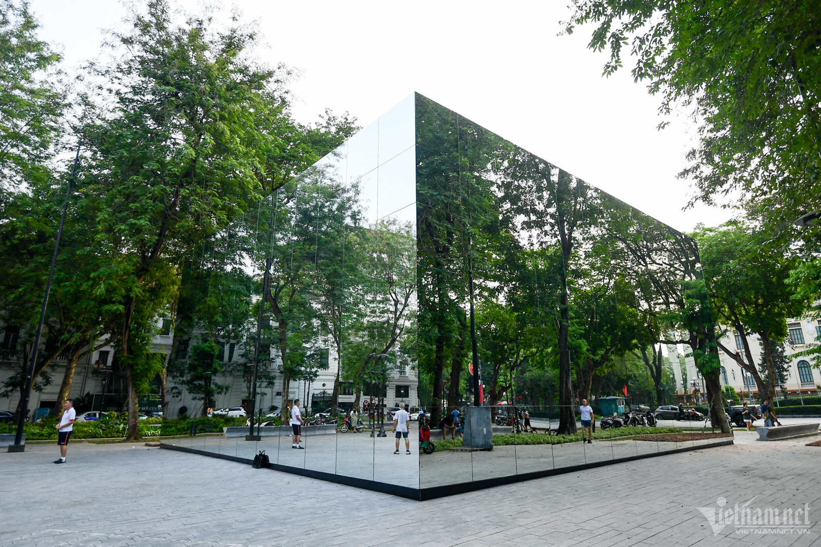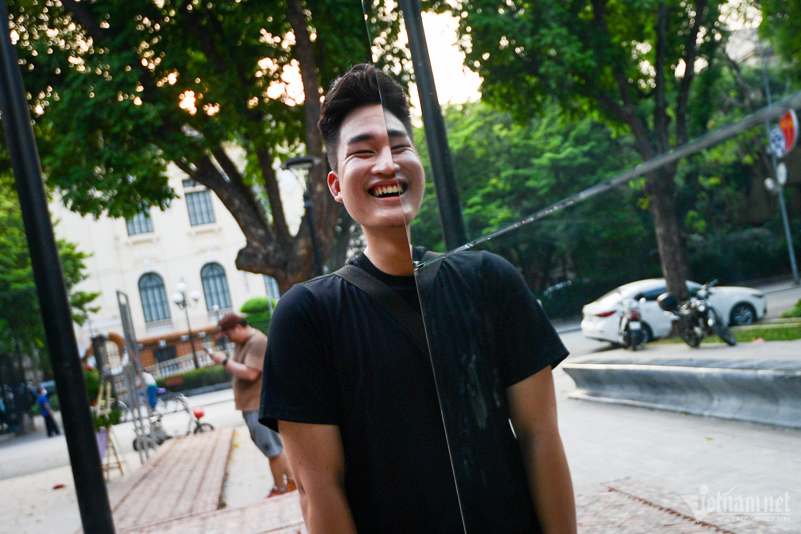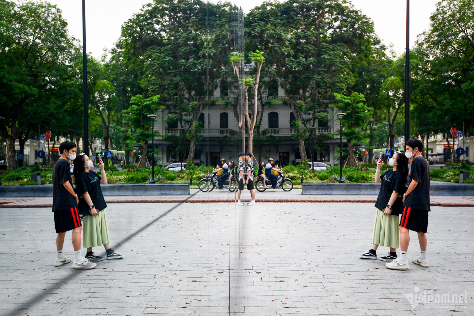 Điểm đặc biệt thu hút của triển lãm này là tấm gương khổng lồ phản chiếu lại mọi sự vật xung quanh. Nhiều bạn trẻ đi ngang qua đã cảm thấy ấn tượng bởi kiến trúc độc đáo và ghé vào tham quan.