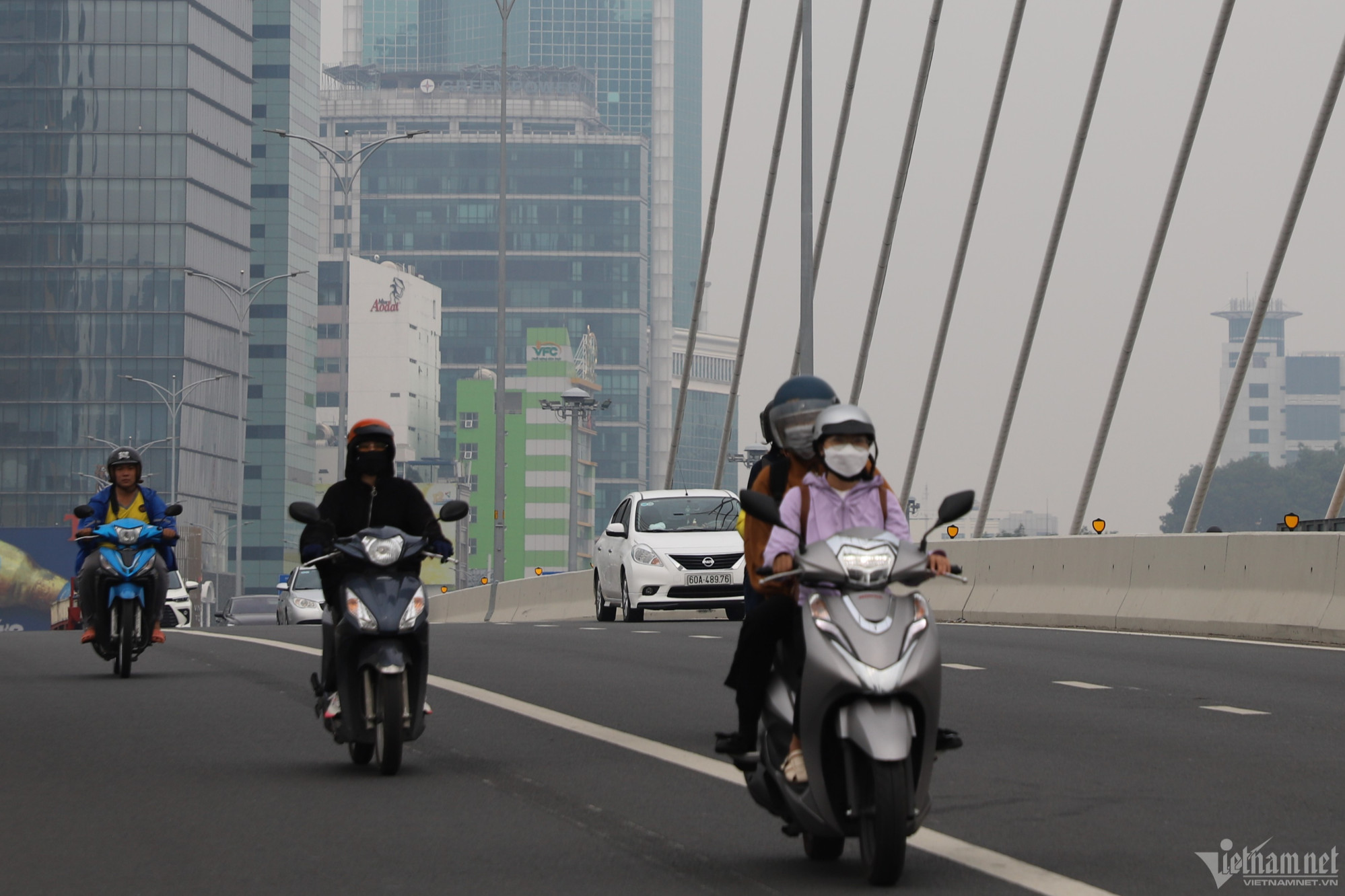 Đến 14h chiều nay, TP.HCM vẫn mờ mịt trong lớp mù trắng đục.