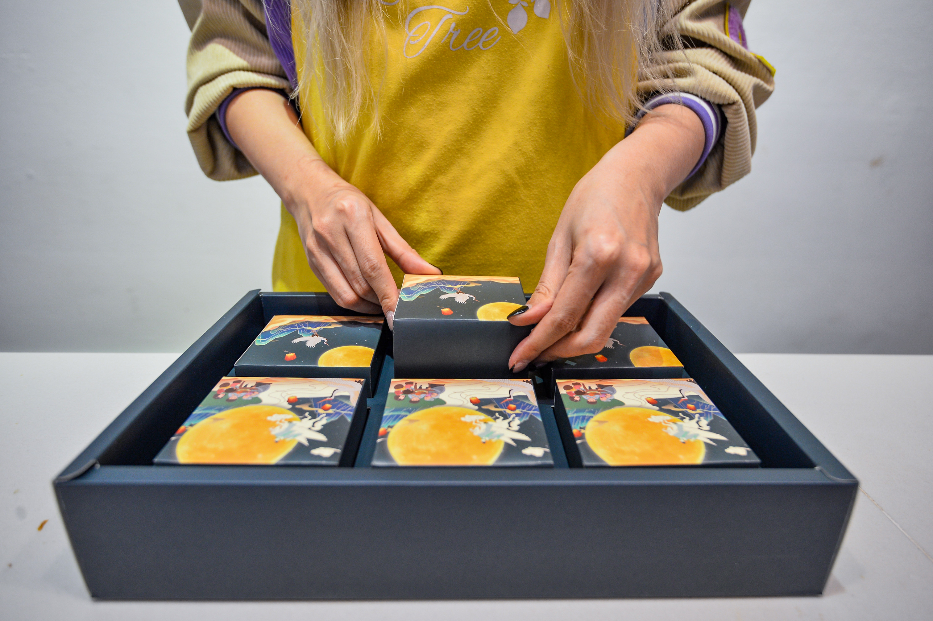 Những chiếc bánh sau khi hoàn thiện sẽ được để nguội trong vòng 15 phút rồi mang đóng gói, phần hộp đựng được thiết kế chỉn chu không khác gì hàng thương mại.