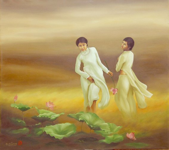 - Tôi thừa nhận, tôi cổ từ suy nghĩ, cái nhìn lẫn bút pháp thể hiện. Ngay từ khi ra trường tới giờ, tranh tôi luôn hiện diện áo yếm, váy đụp, lưng trần, còn giờ thì là áo dài. Với tôi, chưa khi nào vẻ đẹp của những người con gái thời xưa cũ lại hiện diện một cách hài hòa với tà áo dài như thế. Tôi muốn trân trọng, lưu giữ, khắc lại trong tranh mình nét tôn quý, thánh thiện, đài các và đầy e ấp của những người con gái Hà Nội cổ.