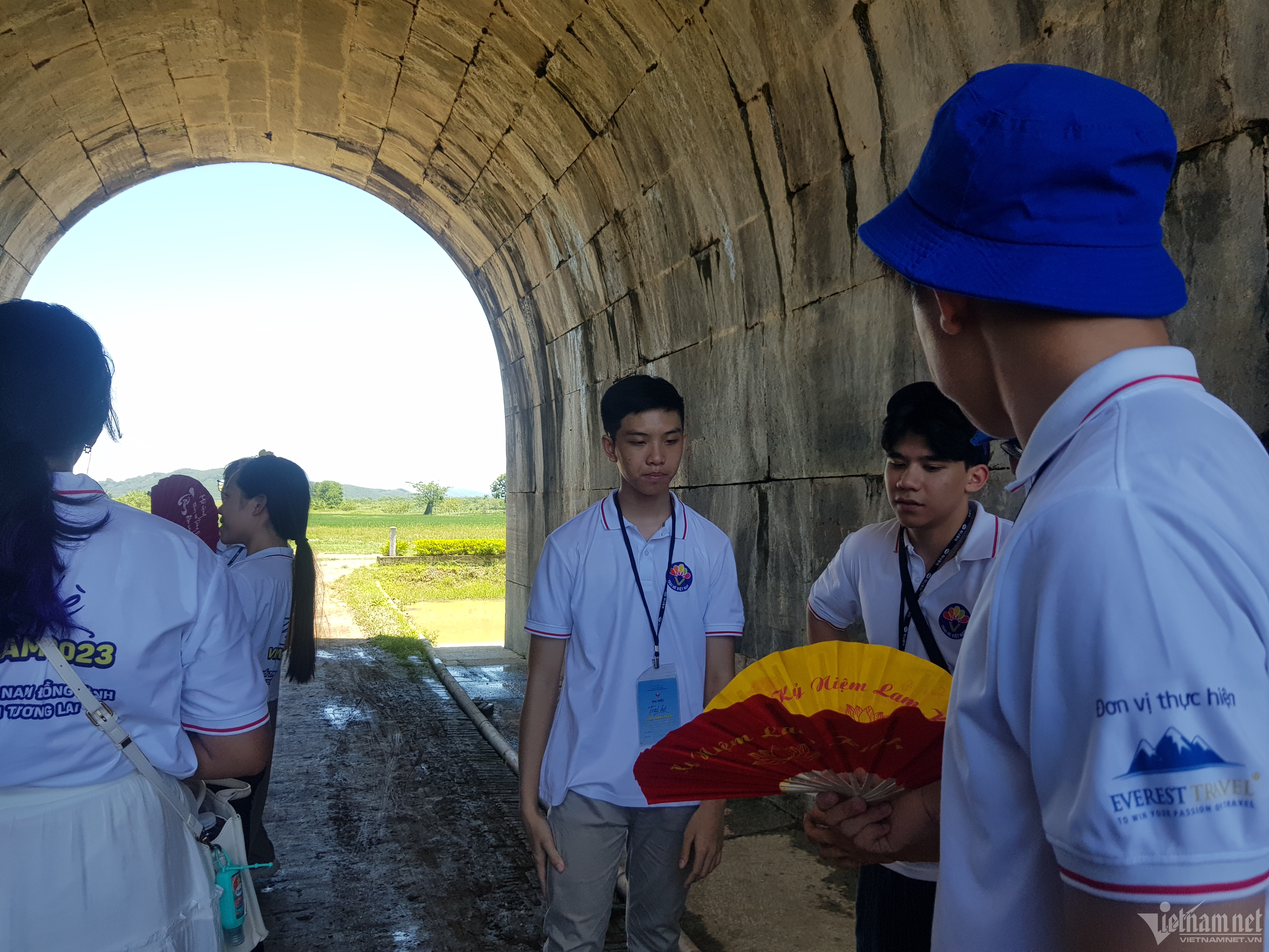 Các bạn trẻ hứng thú với hoạt động trải nghiệm tại Khu di tích Thành nhà Hồ (Thanh Hóa).