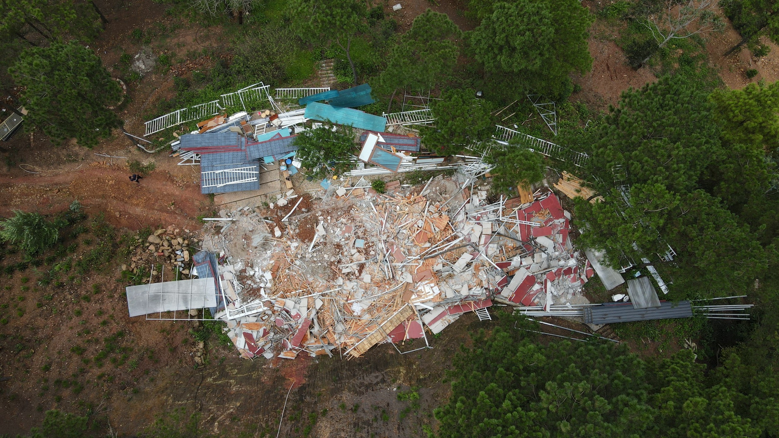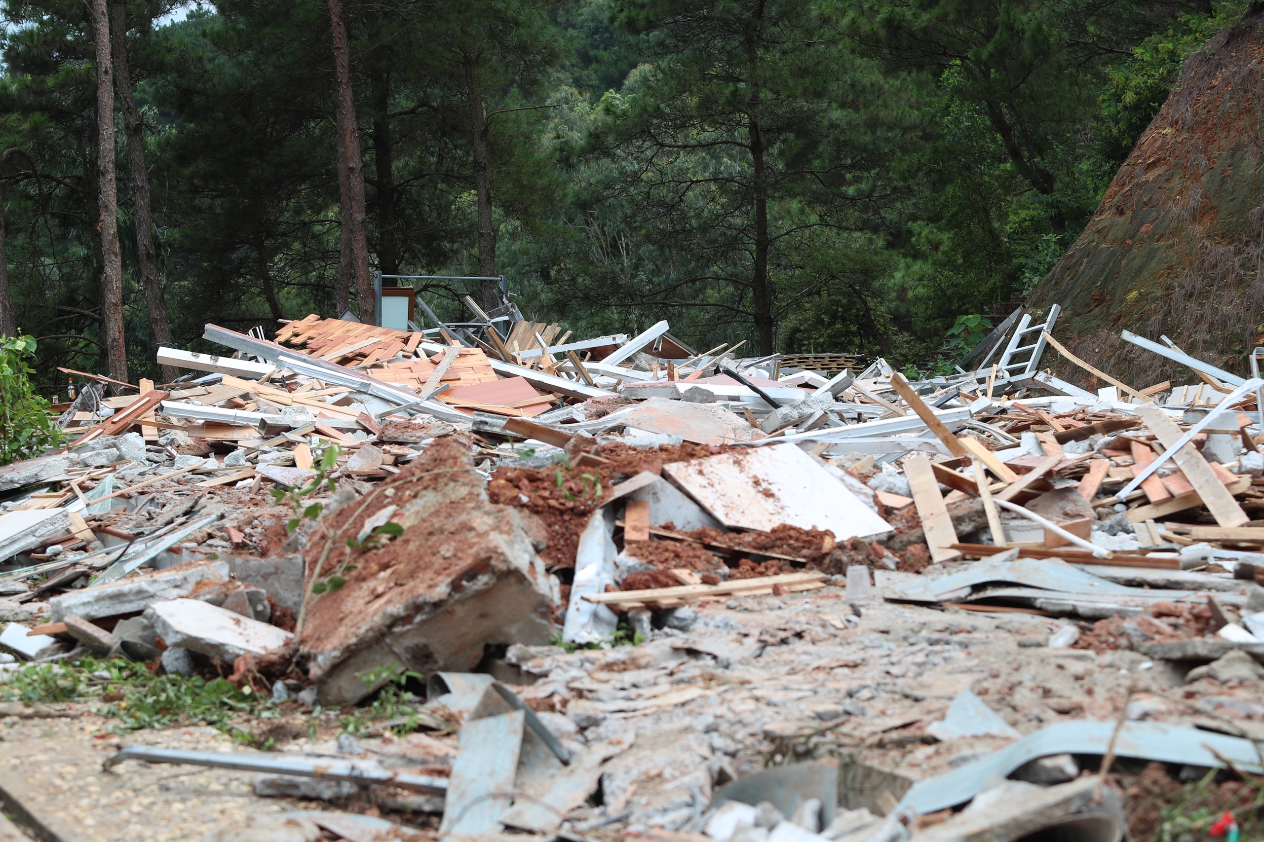 Theo UBND huyện Sóc Sơn, 6 công trình bị phá dỡ ở đồi Dõng Chum được xác định xây dựng trái phép trên đất rừng. Phía dưới chân đồi, còn 4-5 biệt thự, homestay được xây dựng kiên cố từ năm 2020 đến nay.