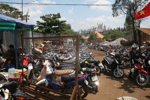 Bãi phế liệu tận dụng làm bãi giữ xe thu với giá 20.000 đ/chiếc |