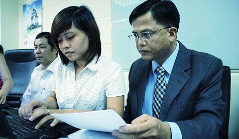 TS Đinh Thế Hiển và ông Phan Ngọc Hòa đến tham gia buổi giao lưu với bạn đọc VietNamNet. Ảnh: Duy Linh |