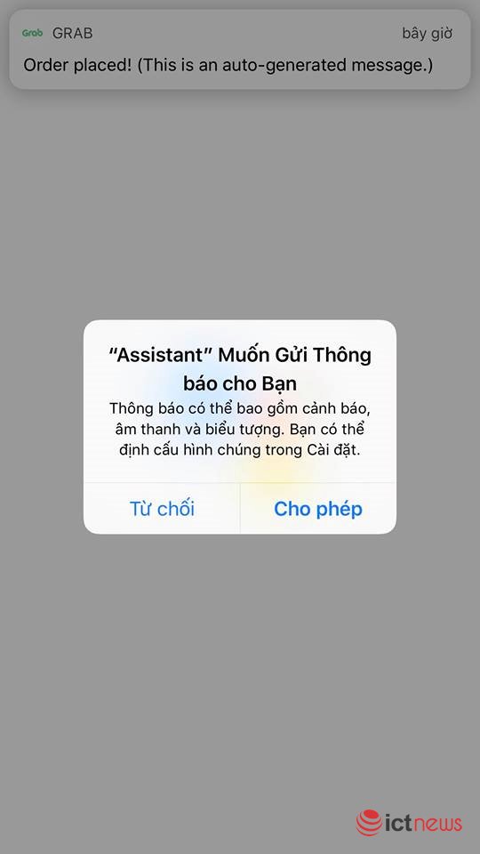 Bước 3: Thông báo Google Assistant muốn gửi thông báo, bạn có thể chọn Từ chối hoặc Cho phép. |