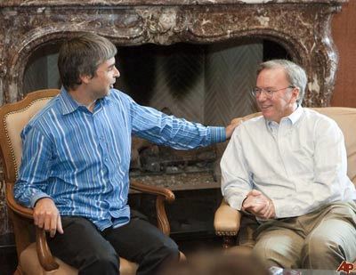 | Larry Page (trái) và Schmidt (phải). |