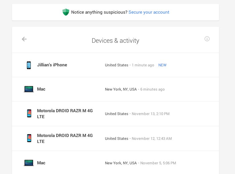 Google còn theo dõi thiết bị bạn dùng và lần cuối sử dụng chúng. Bạn có thể xem lịch sử hoạt động tại đây.