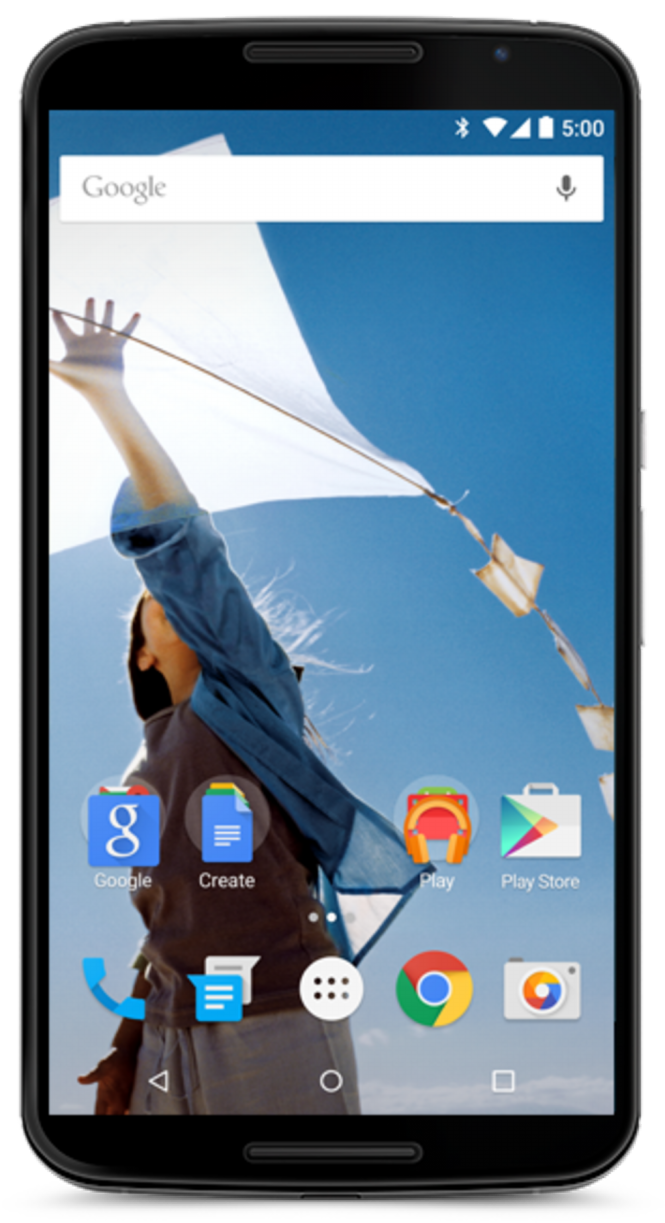 Cùng với Android 5.0 Lollipop, ngày hôm nay Google cũng đã chính thức ra mắt Nexus 6, chiếc phabet do Motorola sản xuất. Theo đó, Nexus 6 sẽ có màn hình 6 inch - lớn hơn cả iPhone 6 Plus và Galaxy Note 4. Màn hình máy có độ phân giải 2K (2560x1440), giúp các nội dung như text, ảnh, hiển thị với chất lượng tốt.