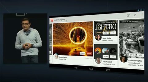 Ngoài ra, khi xem ở chế độ màn hình ngang, phiên bản Google+ cho máy tính bảng sẽ hiển thị các bài viết dựa trên mức độ phổ biến. Ví dụ, nếu một tấm ảnh trong dòng tin mới được +1 nhiều lần, nó sẽ xuất hiện lớn hơn một chút.