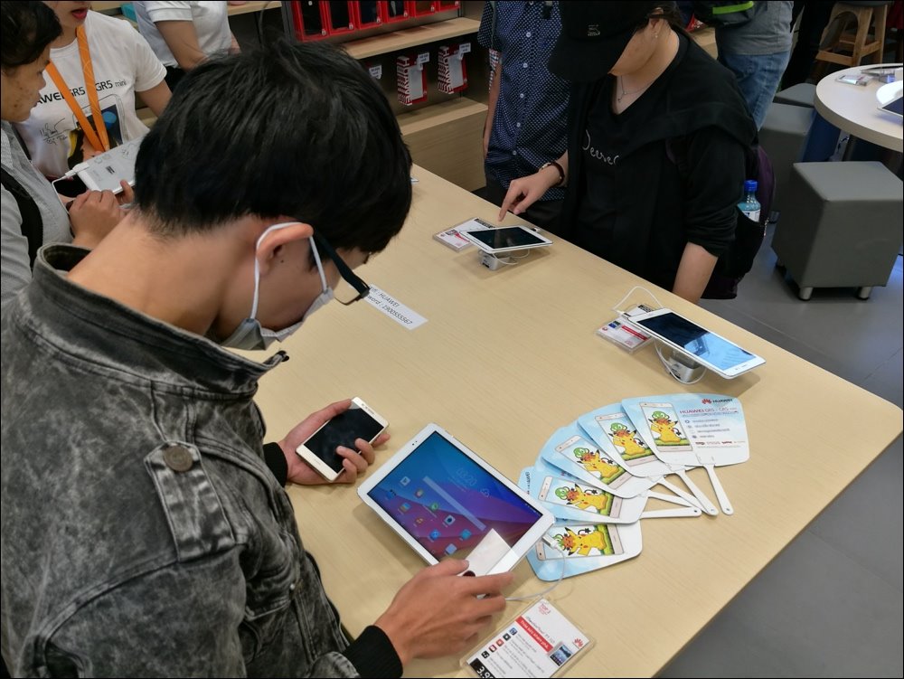 Một người đang dùng thử sản phẩm của Huawei khi một cửa hàng Huawei khai trương tại Việt Nam. Tất cả smartphone, tablet Huawei hiện nay dùng hệ điều hành Google - Ảnh: Hải Đăng |