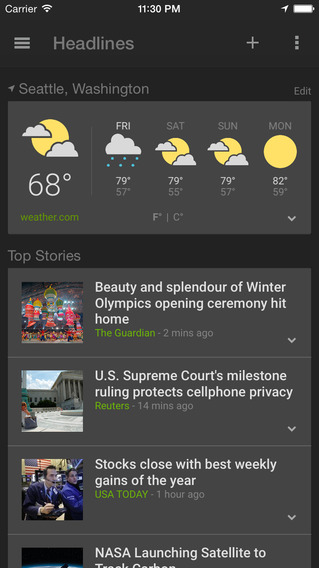 Theo Google, ứng dụng News & Weather mới dành cho iOS giúp người dùng iPhone, iPad xem được toàn bộ các câu chuyện mới và thời tiết địa phương. Dịch vụ miễn phí tập hợp tin tức từ 65.000 ấn bản, có thể tùy chỉnh để hiển thị nội dung theo chủ đề, ví dụ Hollywood, thời trang hay NASA. Cho đến thời điểm hiện tại, chỉ Android mới có ứng dụng như thế do Google phát triển. Đối với tính năng thời tiết, ứng dụng dự báo thời tiết trong 4 ngày tiếp theo.