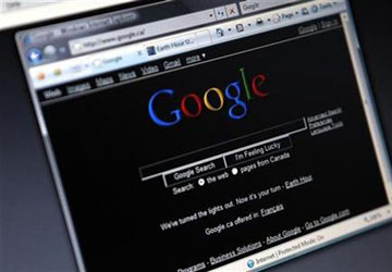 Ảnh chụp màn hình công cụ tìm kiếm Google chuyển sang nền đen để ủng hộ Giờ Trái đất chống hiện tượng nóng lên của toàn cầu. Google thách thức Microsoft và Mozila bằng trình duyệt mới tinh Chrome