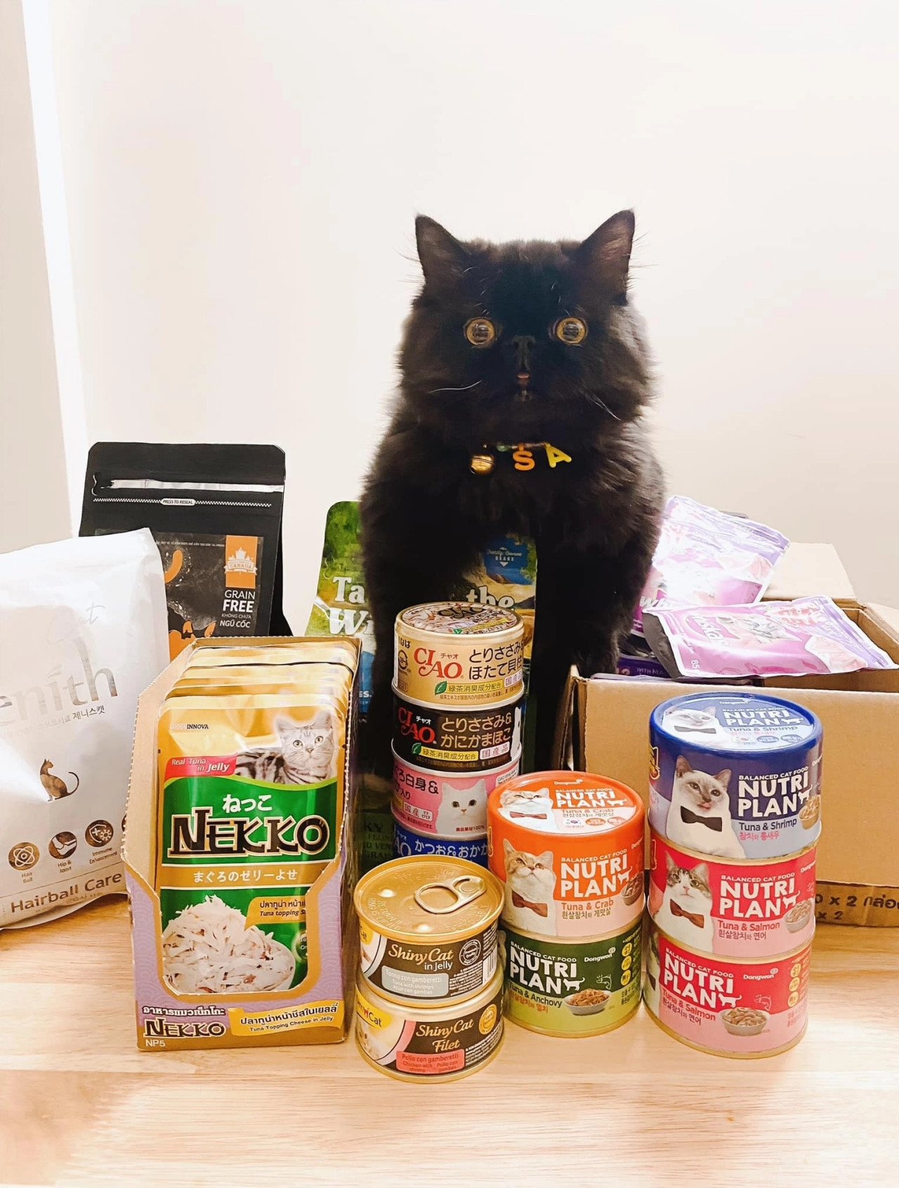 “Cả ba em đều được bổ sung nhiều loại vitamin, dầu cá để tăng kháng thể, giúp đẹp da và lông. Mỗi loại lại có chức năng riêng như cái tốt cho tim và mắt, cái dùng cho đường tiết niệu. Gel tiêu búi lông trong bụng, giúp mèo không bị nôn ói khi tự liếm lông cũng không thể thiếu”, Ngọc chia sẻ.
