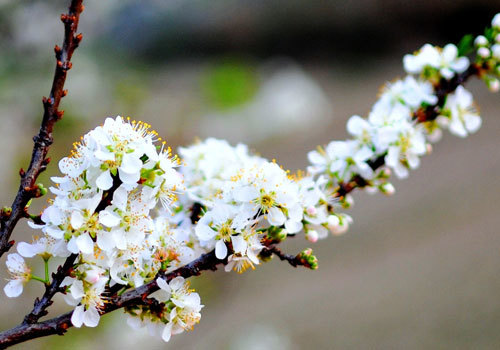 Chồi non lộc biếc và những cánh hoa đã bừng sắc thắm.