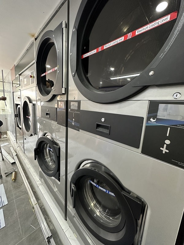 Theo GV Laundry, tiệm được trang bị máy giặt công nghiệp Blue Whale, giúp quá trình giặt ủi được đảm bảo chất lượng, nhanh chóng, tiết kiệm nước và điện. Các thiết bị phụ trợ khác như: cầu là hơi, máy ép chăn, máy hút chân không…cũng được sử dụng để đảm bảo mọi đồ giặt được giặt sạch, đáp ứng mọi nhu cầu của khách hàng.