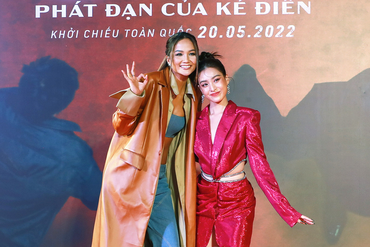 Tại sự kiện ra mắt phim "578: Phát đạn của kẻ điên", nữ chính H'Hen Niê thu hút ánh nhìn với crop-top, áo khoác da và quần jean. Người đẹp khoe thân hình nóng bỏng, đặc biệt là vòng eo săn chắc, một cách khéo léo. Trong phim, H'Hen Niê đóng vai Bảo Vy - xuất hiện là nữ tài xế lái container. Bảo Vy là người đồng hành cùng Hùng (Alexandre Nguyễn) trong hành trình trả thù băng đảng thực hiện tội ác xâm hại tình dục con gái anh.Vì vai diễn điện ảnh đầu tay, H'Hen Niê không ngại hy sinh. Cô tập võ 8 tiếng/ngày, tập gym mỗi ngày để rèn luyện thể lực. Người đẹp dầm mưa suốt 20 ngày, quay hơn 63 lần trong thời tiết lạnh cho cảnh đánh nhau.H'Hen Niê đọ sắc Thảo Tâm - vai cô giáo trường nội trú. Hai diễn viên nữ phim "578: Phát đạn của kẻ điên" thể hiện hai phong cách khác nhau trên thảm đỏ. Hồng "Mắt biếc" diện cây hồng ánh kim cắt xẻ tôn dáng của NTK Lê Ngọc Lâm. Nhan sắc trong veo cùng tương tác giữa Thảo Tâm và nam chính là điểm nhấn trong phim. Theo MC Nguyên Khang, nam chính Alexandre Nguyễn không về nước dự sự kiện vì đón con đầu lòng ở Pháp.Võ sư Tuấn Hạc - vai Lý "Mặt lạnh", một tay sai đắc lực trong băng đảng tội phạm - vui kể: "Tôi "đánh" tất cả diễn viên chính trong phim. Tôi đặc biệt thích "đánh" H'Hen Niê. Phim này các diễn viên phải đánh thật, nếu đánh giả, bạn sẽ nghe ngay giọng đạo diễn Lương Đình Dũng bên tai: "Cắt! Lại!".Ngọc Tình (phải) sánh đôi người đẹp Trà Ngọc Hằng. Trong phim, Ngọc Tình vào vai Thái - con trai ông trùm, vai phản diện có tính cách biến thái, đa đoan. Trong "578: Phát đạn của kẻ điên", diễn viên Hoàng Phúc vào vai ông trùm băng đảng. Trên thảm đỏ sự kiện, anh diện cây vest trắng khiến MC Nguyên Khang trêu chọc: "Trùm cuối hôm nay diện vest trắng lịch lãm quá".