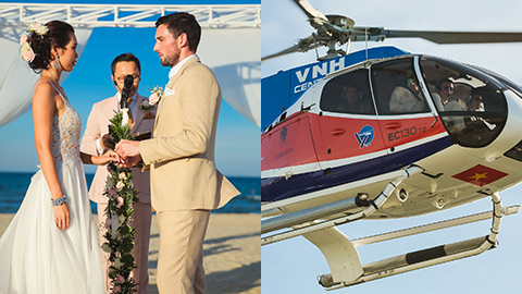 Khoảnh khắc cô dâu xuất hiện trên trực thăng là ý tưởng độc đáo đầy ấn tượng của Hà Anh trong lễ cưới của mình.