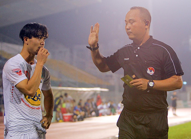 Vì vất vả, Công Phượng đã phải câu giờ và nhận thẻ vàng từ trọng tài Trung Kiên