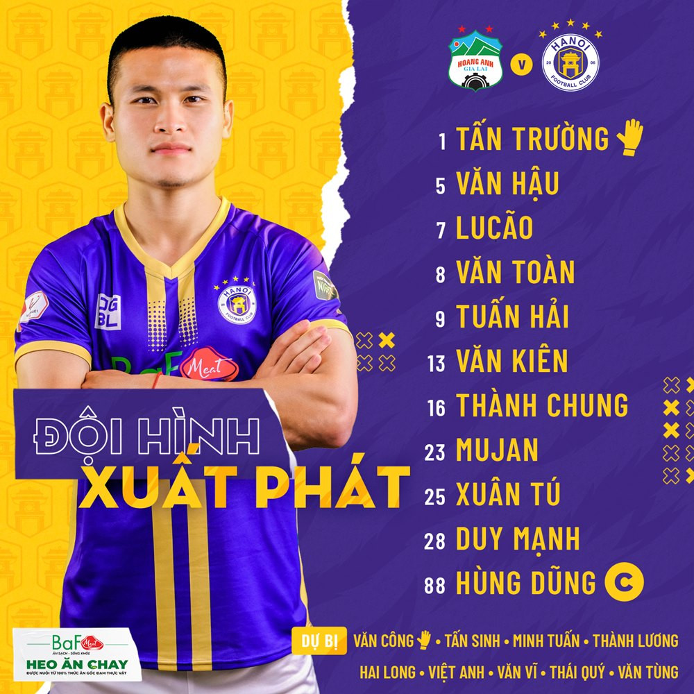Hà Nội FC: Tấn Trường (thủ môn), Thành Chung, Duy Mạnh, Văn Hậu, Văn Kiên, Hùng Dũng, Văn Toàn, Mujan Tonci, Xuân Tú, Tuấn Hải, Lucao
