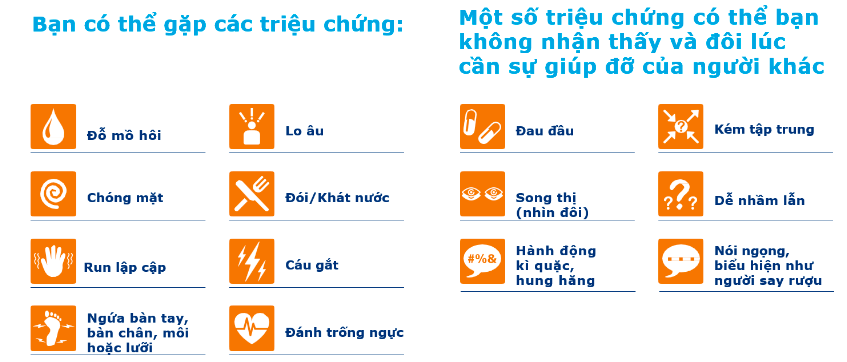Hạ đường huyết là tình trạng xảy ra khi lượng đường trong máu hạ xuống quá thấp. Do đường chịu trách nhiệm cung cấp năng lượng cho cơ thể nên ban đầu người bị hạ đường huyết thường cảm thấy mệt mỏi và khó chịu. Sau đó, các biểu hiện nghiêm trọng hơn có thể xuất hiện như run rẩy, chóng mặt, đau đầu, vã mồ hôi; tim đập nhanh, thị lực giảm, cáu gắt và da tái nhợt… Trong trường hợp đường huyết giảm đột ngột sẽ gây ngất xỉu.