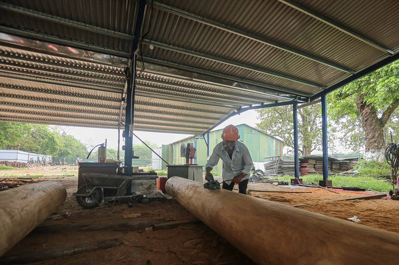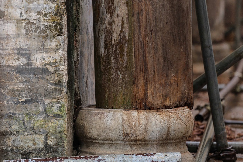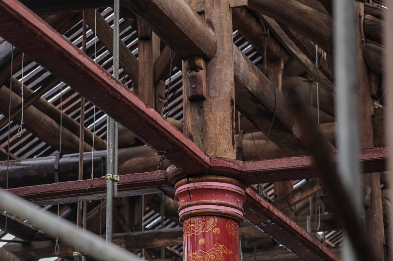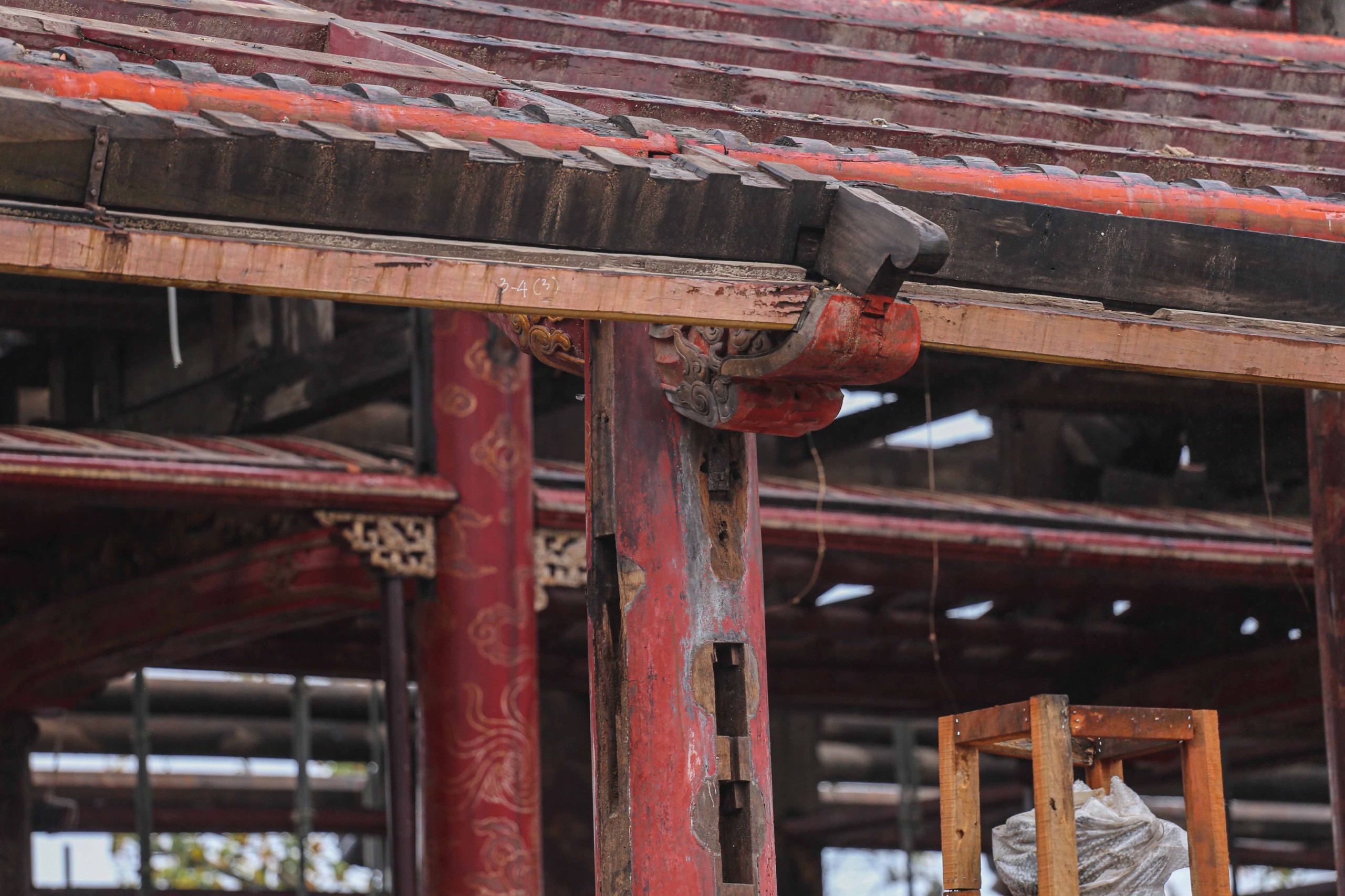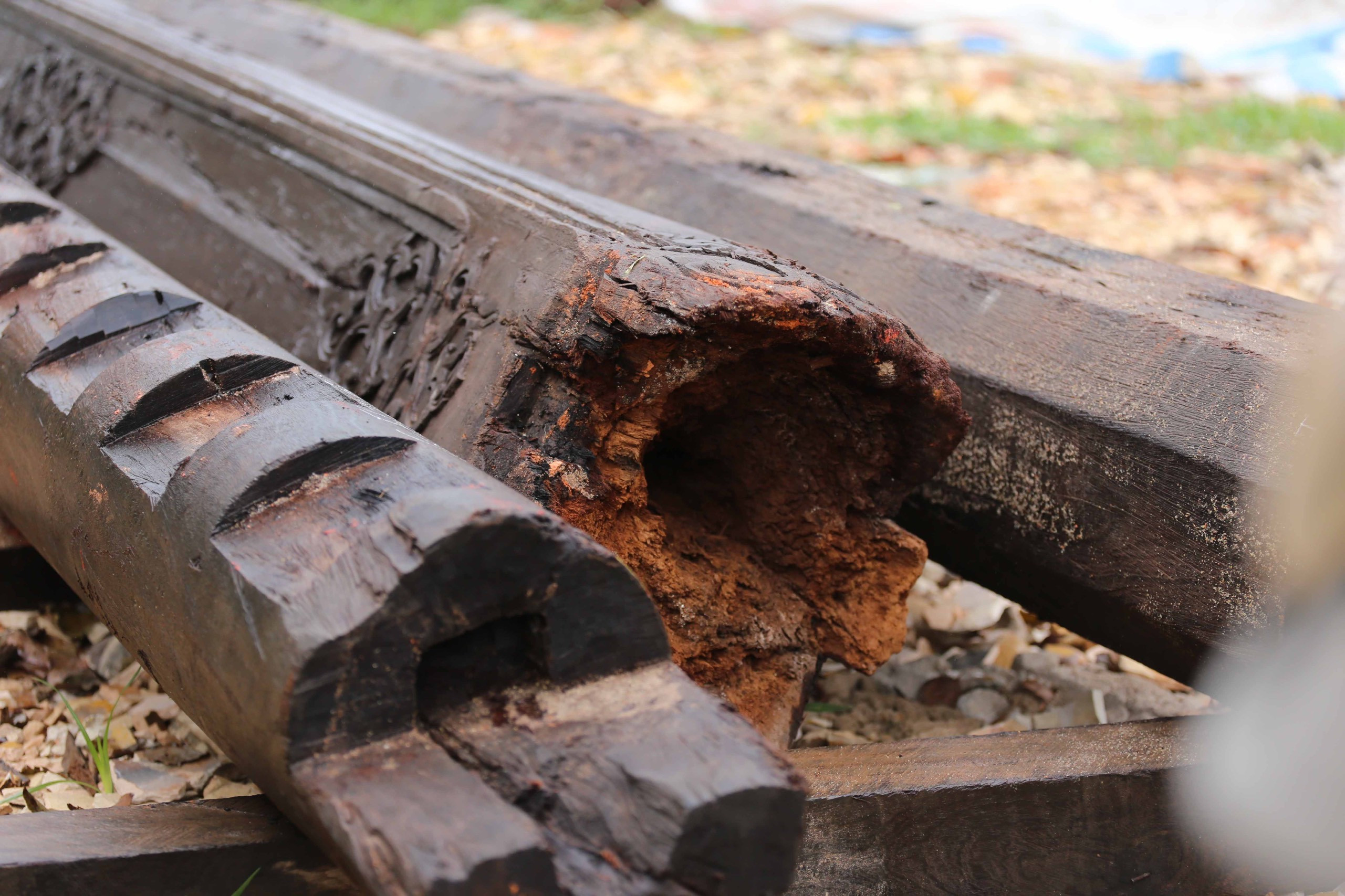 Đối với các cấu kiện được đánh giá hư hỏng hoàn toàn thì phục hồi mới. Các cấu kiện hư hỏng ít sẽ xử lý vệ sinh nối vá, nối mộng thay cốt ốp mang, nối chân cột, đuôi kèo, đầu kèo. Đối với các cấu kiện còn tốt sẽ được vệ sinh tái sử dụng.