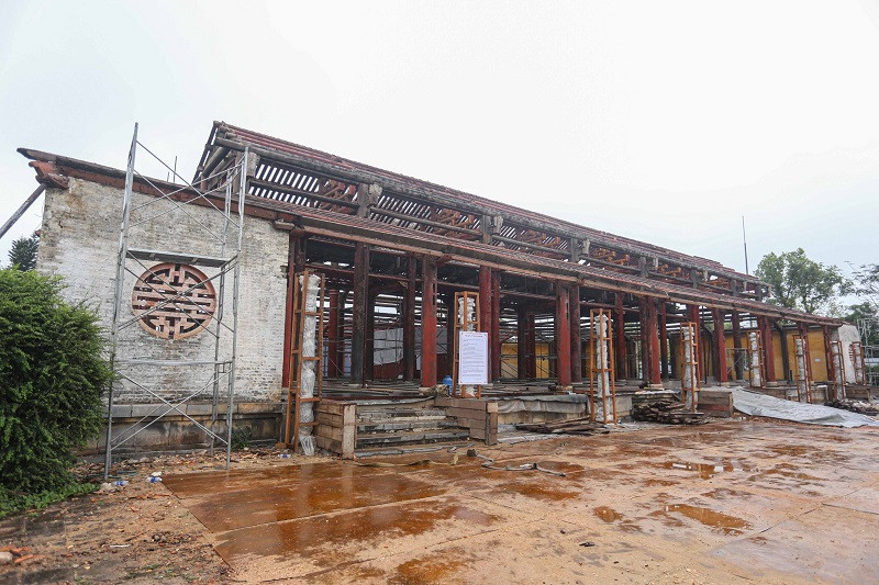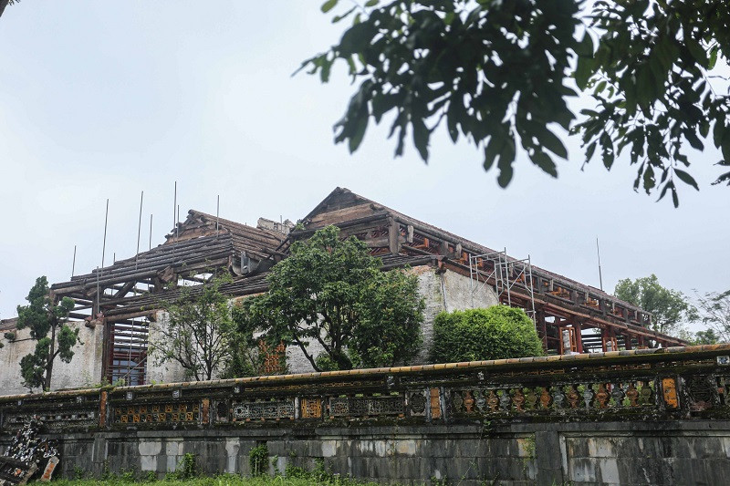 Những ngày qua, Trung tâm Bảo tồn Di tích Cố đô Huế đang phối hợp với các đơn vị liên quan, tiến hành hạ giải để trùng tu điện Thái Hòa.