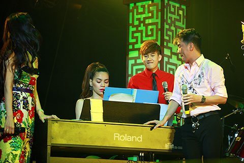 | Với cây đàn piano, cô đã mang đến nhưng thanh âm trong trẻo khi cùng Mr.Đàm, Dương Triệu Vũ và Lệ Quyên thể hiện ca khúc Gọi tên bốn mùa |
