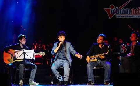 Hoài Nam với sự hỗ trợ của ban acoustic trong "Tan vào Hà Nội"