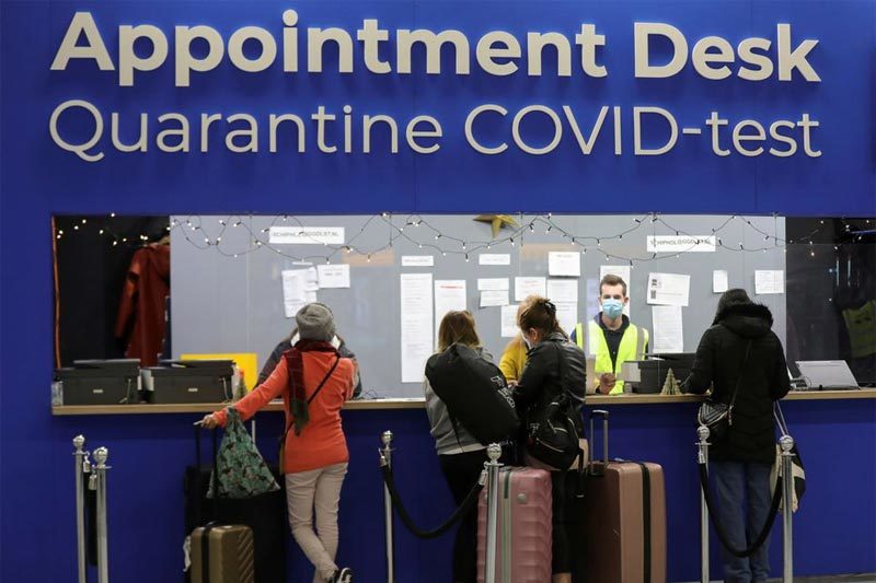 Các hành khách chờ làm thủ tục đăng ký xét nghiệm Covid-19 và cách ly tại sân bay Schiphol, Amsterdam, Hà Lan. Ảnh: Reuters |