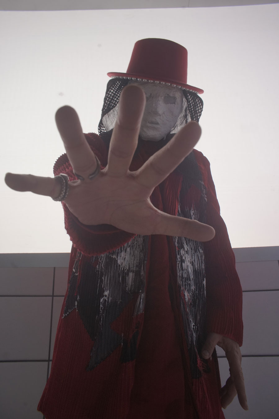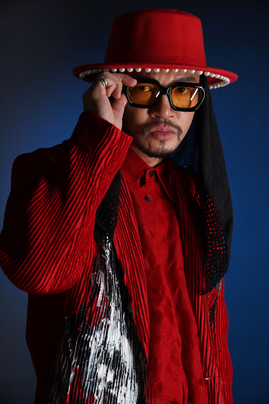 Trong bộ suit cách tân màu đỏ, cùng chiếc mũ chỉ dấu quen thuộc, đeo chiếc mặt nạ kỳ bí, Hà Lê toát lên tinh thần thời đại như một “quý ông” sành điệu, đầy chất điện ảnh mê hoặc và bí ẩn.