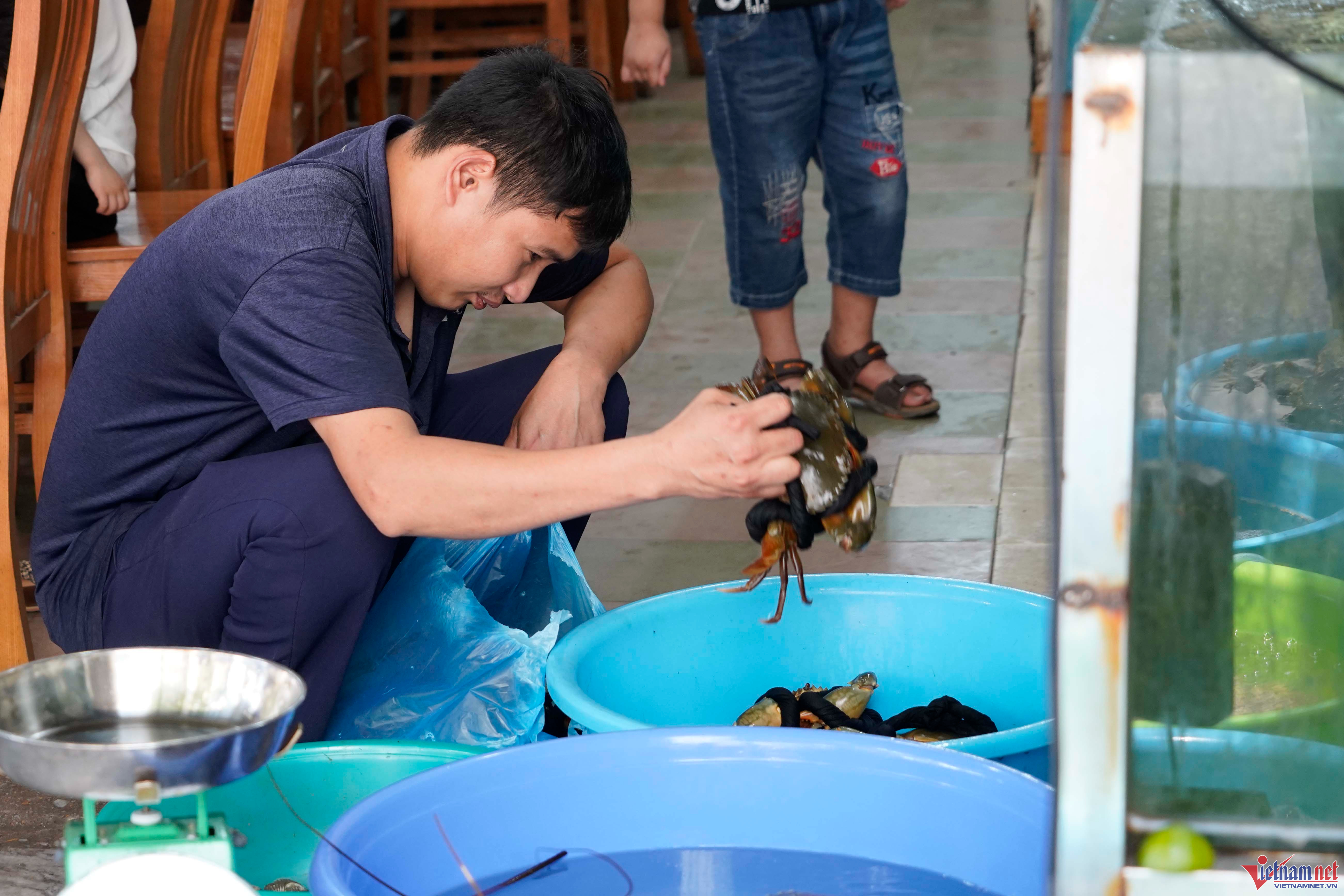 Do số lượng quá đông khách, các nhà hàng phải huy động người thân đến phụ giúp, mỗi quán có tới 3 người làm nhiệm vụ chào mời khách hàng.