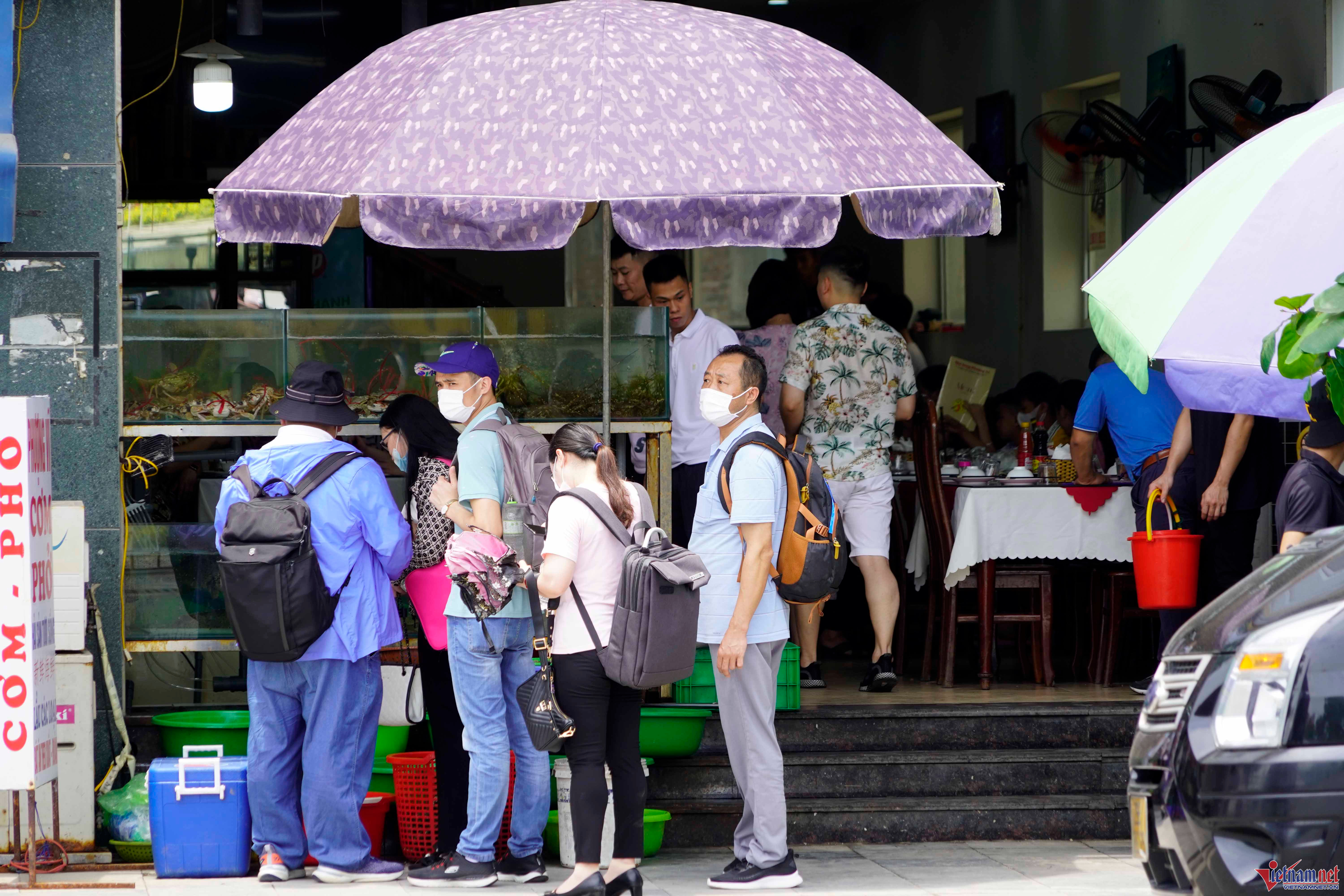 Lượng khách đổ về quá đông vào buổi trưa, toàn bộ nhà hàng ở trung tâm du lịch Bãi Cháy, TP Hạ Long, Quảng Ninh trong tình trạng chật kín bàn, muốn ăn hải sản phải xếp hàng chờ.