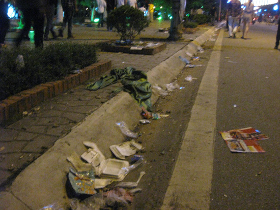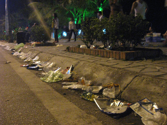 Đi dọc con đường từ Khách sạn Bưu điện Hạ Long đến chân cầu Bãi Cháy (nơi đặt sân khấu chương trình Đêm hội Carnaval Hạ Long 2011), những gì chúng tôi ghi nhận được thực sự đáng buồn. Rác có mặt ở mọi nơi, trên đường, bãi cỏ, ghế ngồi, thậm chí có người còn tiện tay vứt xuống biển.