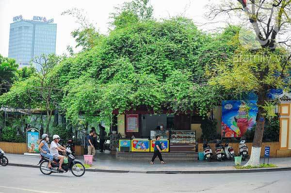 Không chỉ vậy quầy kem ngay bên Hồ Gươm được rất nhiều loại cây phủ kín.