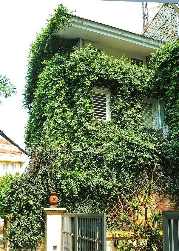 Khi Hà Nội những ngày này đang ở đợt nắng nóng quanh ngường 40 độ C thì việc nhìn ngắm những căn nhà phủ kín cây xanh có thể giúp bạn hạ nhiệt phần nào.