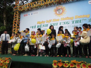 | Các bệnh nhi bị ung thư đến tham dự ngày hội hoa hướng dương |