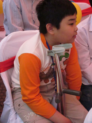 | Em Phạm Văn Đức, bị ung thư xương đã 3 năm nay, em đã bị cưa một chân và vẫn tiếp tục điều trị ở bệnh viện K. |