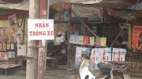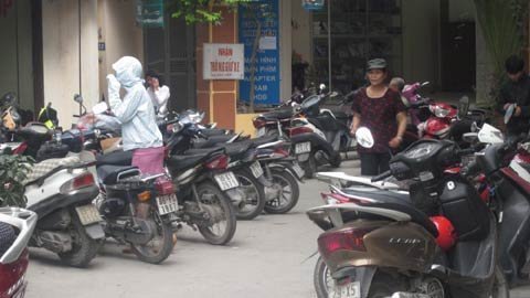 | Một bãi gửi xe tự phát trong một con ngõ nhỏ, trước cửa bảo hiểm xã hội quận Hai Bà Trưng trên đường Giải Phóng. |