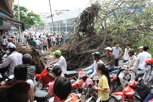 Chị Hoa - cửa hàng bảo hộ lao động số nhà 179 Lê Duẩn cho biết: Sau khi nghe tiếng rắc rắc thì cây đa bất ngờ đổ gục chắn ngang đường Lê Duẩn.