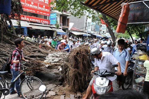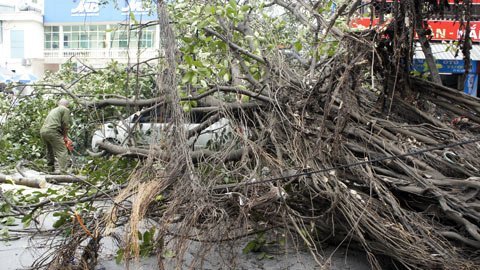 Được biết, cách đây 2 ngày trên phố Đỗ Ngọc Du 1 cây đa cổ thụ đã đổ gục đè bẹp một ô tô, nguyên nhân chính do cây bị chặt hết rễ không còn chỗ bám vào đất.