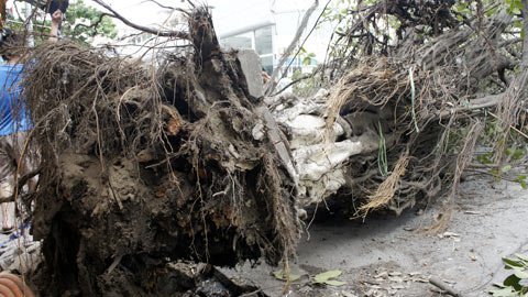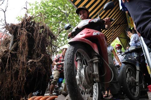 ![]() Cây đa đã bị đơn vị thi công lát lại vỉa hè chặt hết rễ chùm nên dù trời không mưa cũng rất dễ đổ. ![]() ![]() Công nhân công ty cây xanh dọn dẹp để thông đường ![]() |