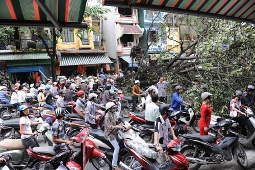 Giao thông trở nên hỗn loạn vì tuyến đường có mật độ người tham gia giao thông rất lớn. Xe ô tô "gặp hạn" khi đang đi trên phố Lê Duẩn có BKS 29A - 006... méo toàn bộ khung xe, rất may lái xe không bị thương.
