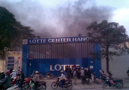 | Khoảng 15h ngày 24/2, tại công trường xây dựng của Công ty TNHH phát triển bất động sản Lotte Center Hà Nội cạnh số 6 phố Đào Tấn, Hà Nội xảy ra vụ cháy. |