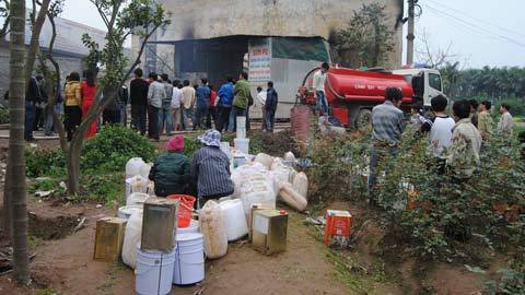 Nhiều can sơn, xăng được các công nhân tháo chạy cùng |