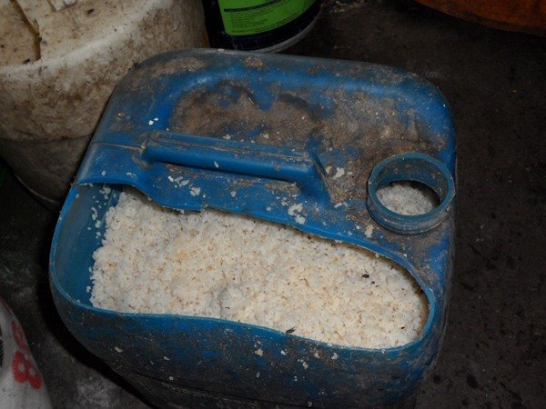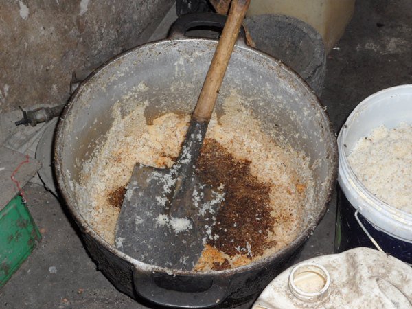 | Sau đó, người nấu rượu sẽ dùng chiếc xẻng (loại như xẻng xúc đất) hoặc ca nhựa bẩn thỉu, đen xì xúc vào hàng chục chiếc thùng sơn hoặc can nhựa cỡ lớn đã khoét miệng bám đầy bùn đất, phía trên ruồi nhặng bu kín. |