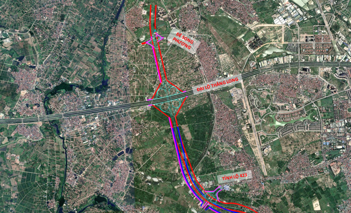 Dự án được chia thành ba nhóm với 7 dự án thành phần. Dự án có tổng diện tích đất khoảng 1.341ha, trong đó TP Hà Nội 741ha, cơ bản là đất nông nghiệp nên việc giải phóng mặt bằng thuận lợi, không ảnh hưởng nhiều đến người dân hai bên đường.