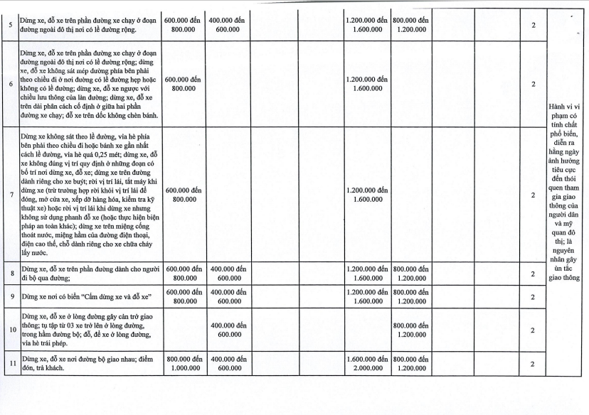 Tương tự với hành vi điều khiển xe không đi bên phải theo chiều đi của mình, đi không đúng phần đường hoặc làn đường quy định (làn cùng chiều hoặc làn ngược chiều), Nghị định 168 quy định mức phạt tiền từ 4 - 6 triệu đồng với ô tô và 600 - 800 nghìn đồng đối với xe mô tô thì Hà Nội đề xuất nâng lên 8 - 12 triệu đồng với ô tô và 1,2 - 1,6 triệu đồng đối với xe máy.