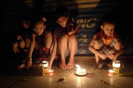 Người dân thắp đèn dầu