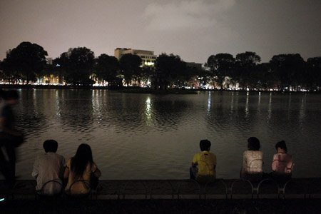 Nhiều người thích thú ghi lại cảnh Hà Nội trong Giờ trái đất