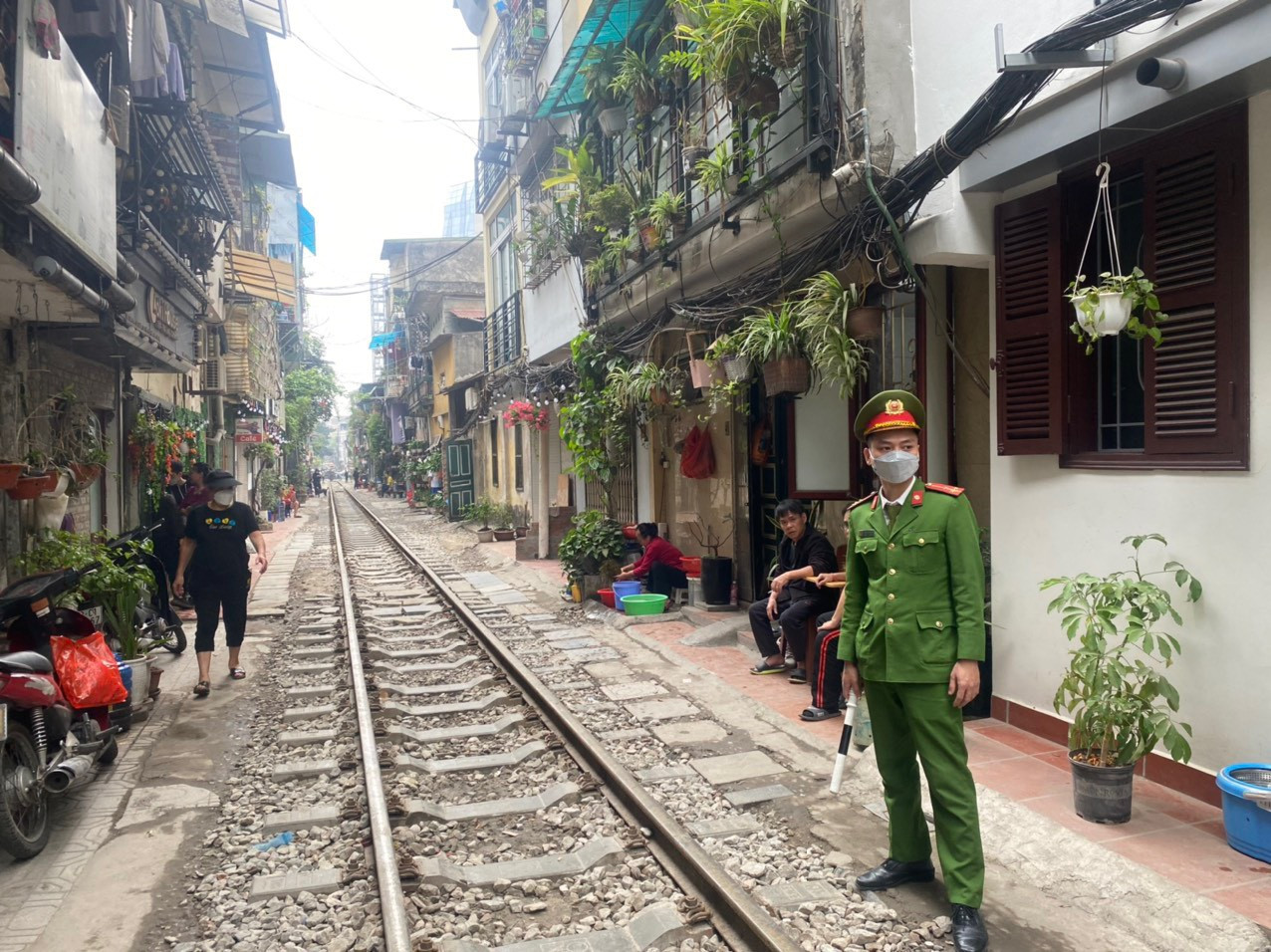 Đồng thời phối hợp với các đơn vị liên quan, công an các phường Hàng Bông, Cửa Nam triển khai các chốt ngăn không cho khách du lịch đi vào khu vực đường sắt; kiểm tra các hàng quán cố tình vi phạm.